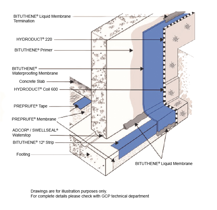 ADCOR, BITUTHENE, HYDRODUCT, PREPRUFE and SWELLSEAL are trademarks, which may be registered in the United States and/or other countries, of GCP Applied Technologies, Inc. This trademark list has been compiled using available published information as of the publication date and may not accurately reflect current trademark ownership or status.